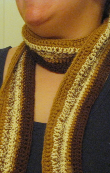 Another great thing to come out of Adam’s 24 in 24 marathon is that I finished crocheting this fall scarf while he played away. Two months later and it’s done. I started this over the summer from a project in Stitch ‘n Bitch Crochet: The Happy Hooker.