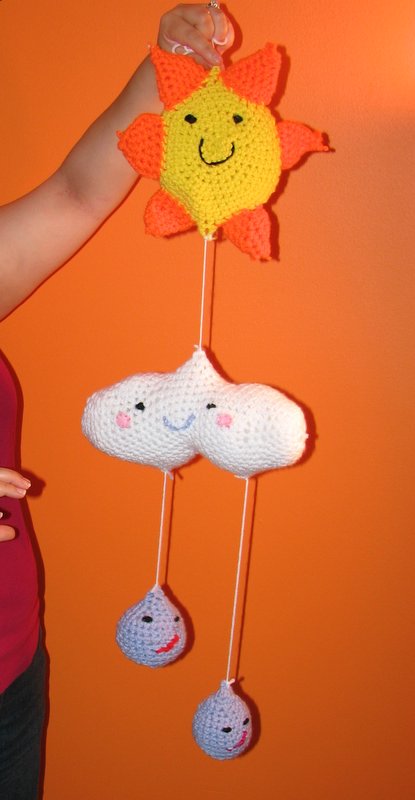 A few weeks ago, I bought this irresistible mobile pattern from Amy Gaines‘s Etsy shop. At the time, I was wrestling with my first crocheted scarf and thought this mobile would be light years away from getting made.