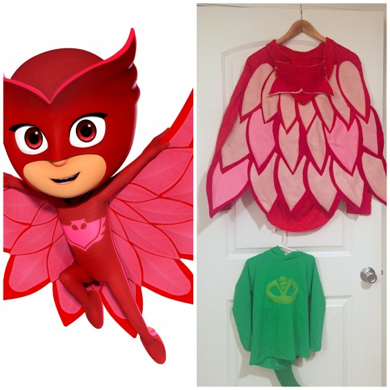 We’re going to Disney World in September, and even though Halloween will be weeks away we’ll be going to Mickey’s Not-So-Scary Halloween Party. This is H’s first trip to Disney, and it’ll be our first time at the Halloween festivities. So I asked her what she wanted her costume to be, and we looked at some Disney characters and shows that she loves. She immediately settled on PJ Masks, and she was adamant that she would be Gecko, I would be Owelette, and Adam would be Catboy.