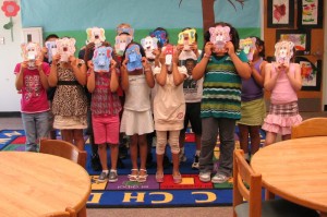 This morning I had a delightful class of second graders come to see me for a field trip. We had a FABULOUS time! I gave them a tour of the library, some of the kids got library cards for the first time, I read a bunch of stories, we made this great elephant craft they’re holding up, AND our library mascot came for a visit! The kids came in quietly and left chatting up a storm about how great the library is. I have the greatest profession ever.