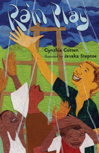 Rain Play by Cynthia Cotten is a rhyming poem about playing in the rain. It has a great, tall format with absolutely gorgeous cut paper illustrations by Javaka Steptoe that manage to be bright and joyful even when depicting the bad weather.