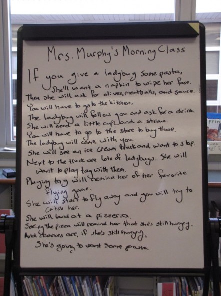 I love Laura Numeroff time. This unit with the kindergarteners is one of my favorites. We read all the If You… books, then we author our own story. This is one we wrote together in class last week. Next week we’ll illustrate it.