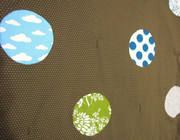 This is going really well. It took me three tries to make the circle template out of freezer paper, but I finally got it right. This will have 32 circles when it’s finished, and I’d originally wanted half of them to be appliqued and half of them to be 6 Minute Circles from Pieced Curves So Simple. So right now they are spaced to leave room for the appliqued circles, but now that I’ve got the hang of these 6 minute circles I’m thinking of doing the whole project with just those. Unfortunately I’ve already cut out the circles for the applique patches, so I’m not sure what I’ll do yet. But this is going to look great on the wall in the dining room when it’s finished.