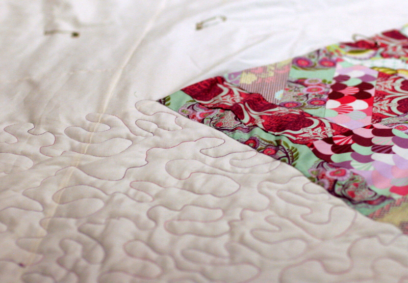 I’ve finished the quilting on this quilt and moved on to the binding, but here is a sneak peak at the quilting:
