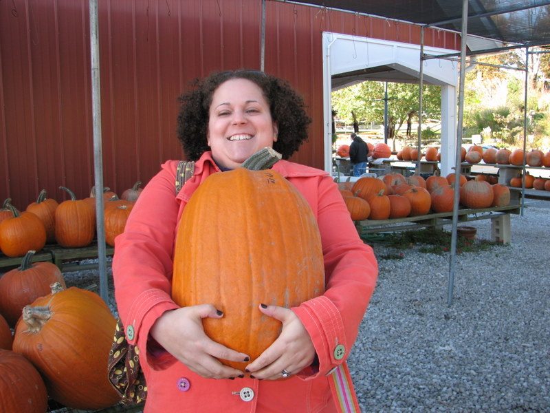 My friend Maggie and I got up at the crack of dawn this morning to go to Demarest Farms in Hillsdale for pumpkins. We were there by about 9:30, and we skipped the whole hay ride/pumpkins in a field business. We just shopped from all the pumpkins they had on tables at the store. Maggie got everything she needed for her carving party next weekend, and I got a fun selection of gourds and pumpkins for my porch diarama (what else do you call a porch display?).