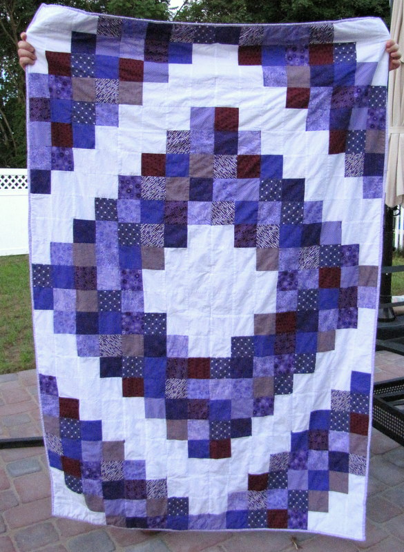 I’ve finished the Purple Quilt, and it’s been delivered to its new home. So now I can show pictures of it and explain why I made it.