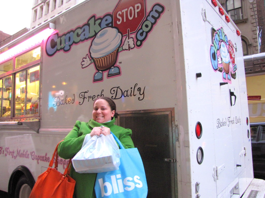 The Cupcake Stop truck was parked up the street from Bliss. So after LA and I were transformed into gobs of putty and spent an hour in the Bliss lounge chilling out, I needed to go. I’ve been stalking them on Twitter since they opened in 2009. I got the mini cupcake sampler, and Adam and I are still eating them. They are so frakking good.